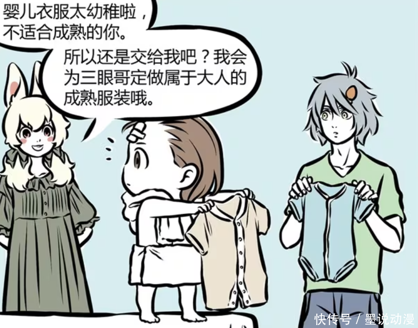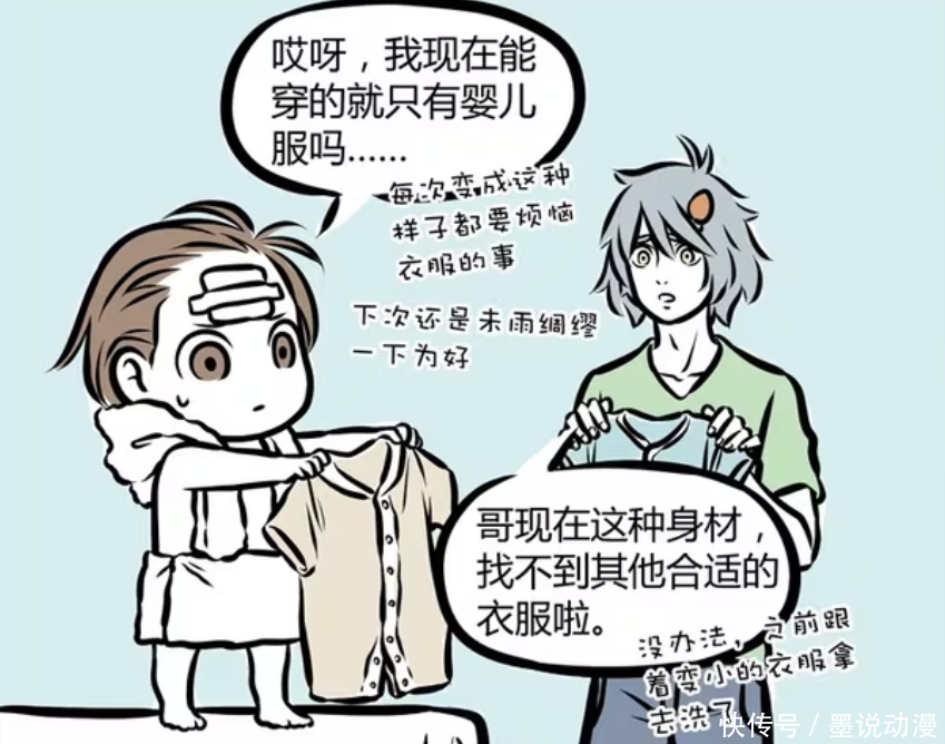因为杨戬只有婴儿大小,所以哮天只能给他买婴儿衣服。每次变小之后,杨戬就觉得麻烦,特别是衣服的事情,更是要提前准备好,不然又会像现在一样。有了这几次经验,杨戬肯定要在家里准备一些变小后能穿的衣服。哮天也表示,现在杨戬的身材,找不到其他更合适的衣服。加上之前变小的衣服铁牛配资,已经拿去洗了,所以没得穿。
